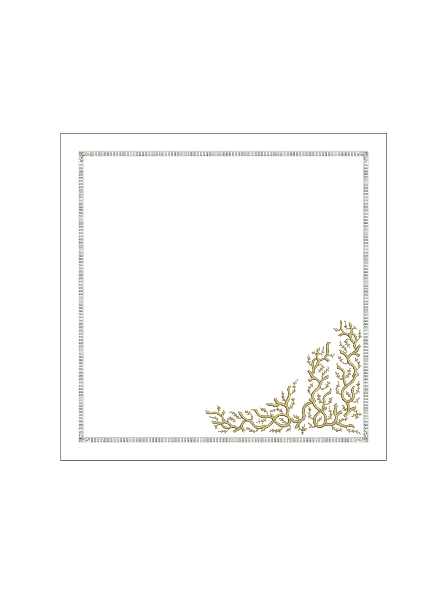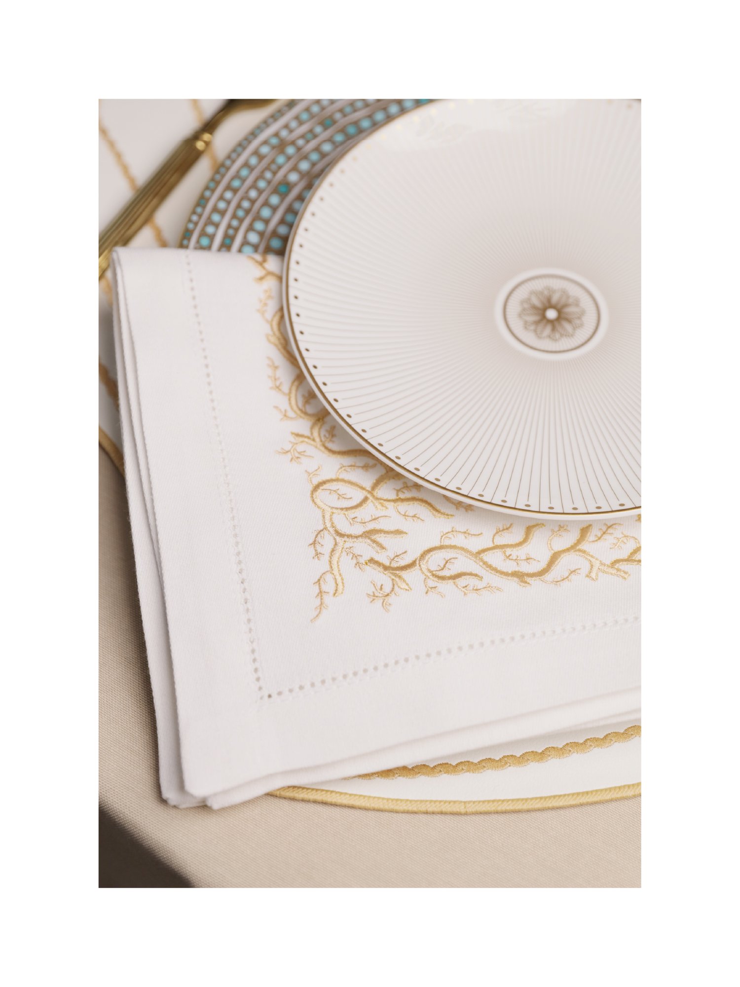 Коллекция Corals построена на утончённой графике морских мотивов. В её основе — изящные силуэты раковин, коралловых ветвей и морских форм, переданные тонкой вышивкой. Лаконичные линии и аккуратная проработка деталей создают цельный декоративный образ, в котором сочетаются лёгкость и выразительность.
