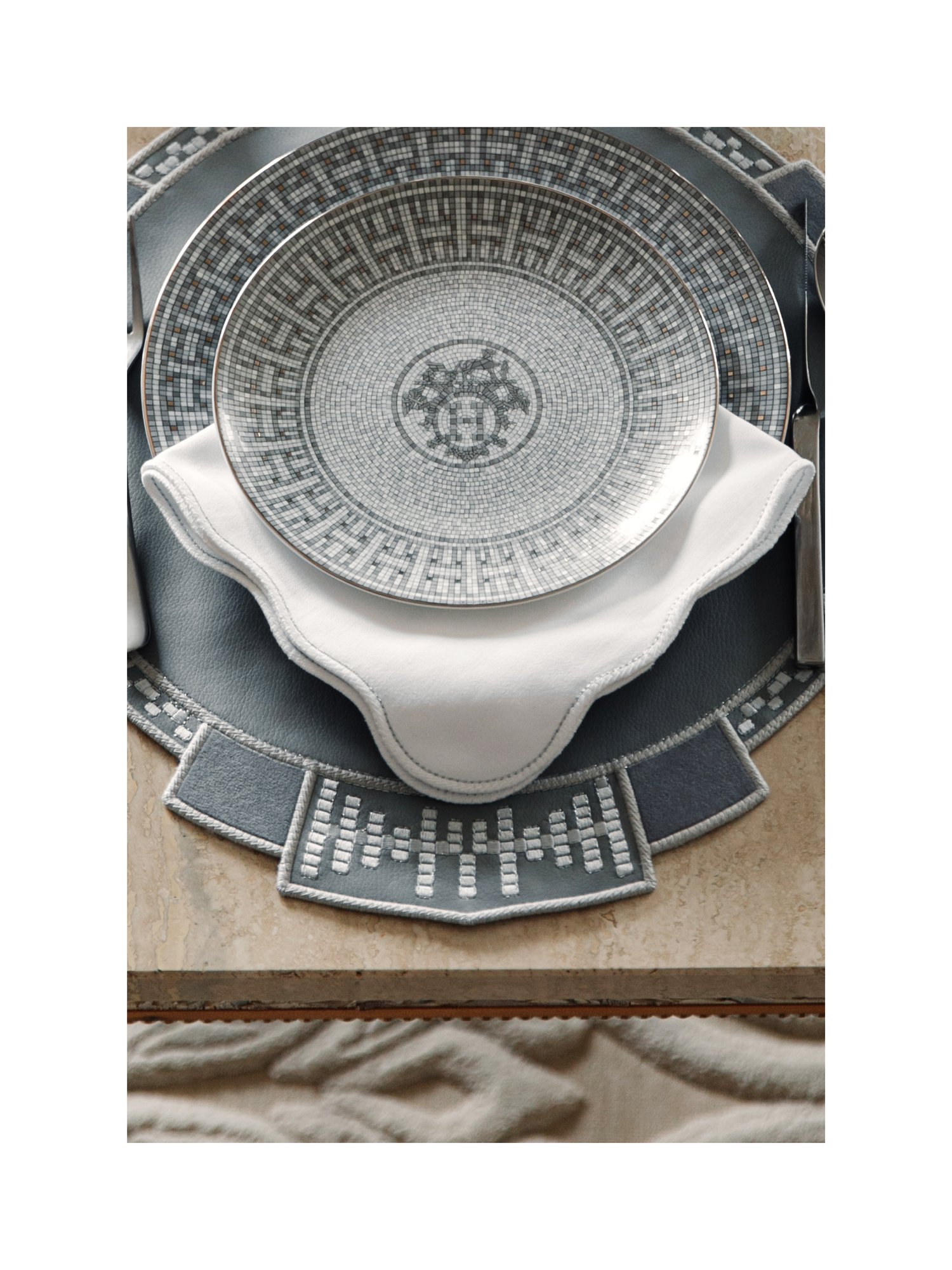 Вдохновлённая культовым орнаментом Hermès Mosaique au 24, эта коллекция словно передаёт игру света на мозаичных узорах. Чёткая геометрия и ритм линий превращаются в драгоценный узор, в котором сочетаются архитектурная строгость и изысканность стиля Hermès. Mosaique — это отголосок легенды, воплощённый в текстиле.