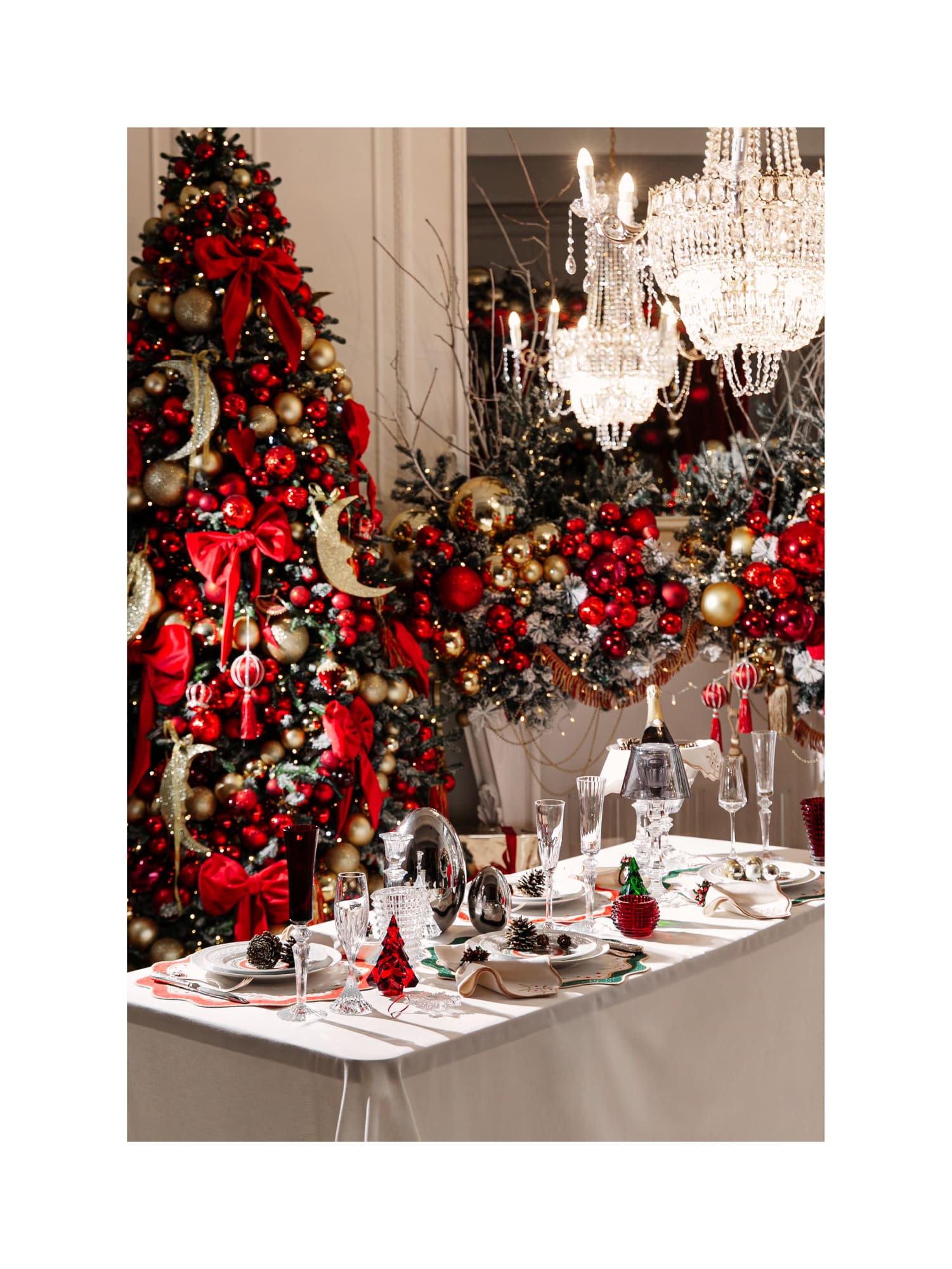 Орнамент коллекции разработан в эстетике, вдохновлённой культовой рождественской посудой Bernardaud Noël: те же мотивы зимней сказочности, внимание к деталям и тонкая праздничная символика. Благодаря этому текстиль становится гармоничным продолжением сервировки и подчёркивает атмосферу торжества.