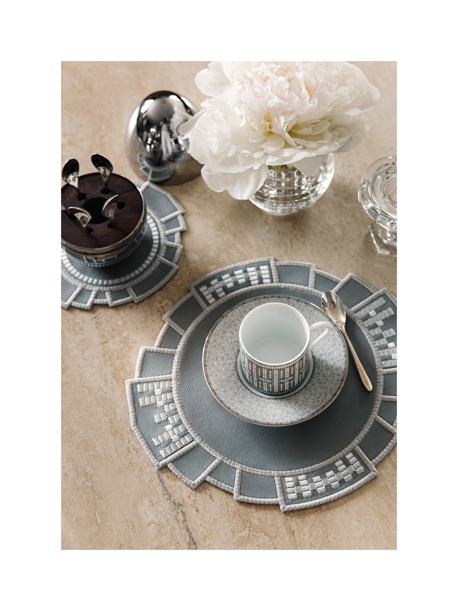 Вдохновлённая культовым орнаментом Hermès Mosaique au 24, эта коллекция словно передаёт игру света на мозаичных узорах. Чёткая геометрия и ритм линий превращаются в драгоценный узор, в котором сочетаются архитектурная строгость и изысканность стиля Hermès. Mosaique — это отголосок легенды, воплощённый в текстиле.