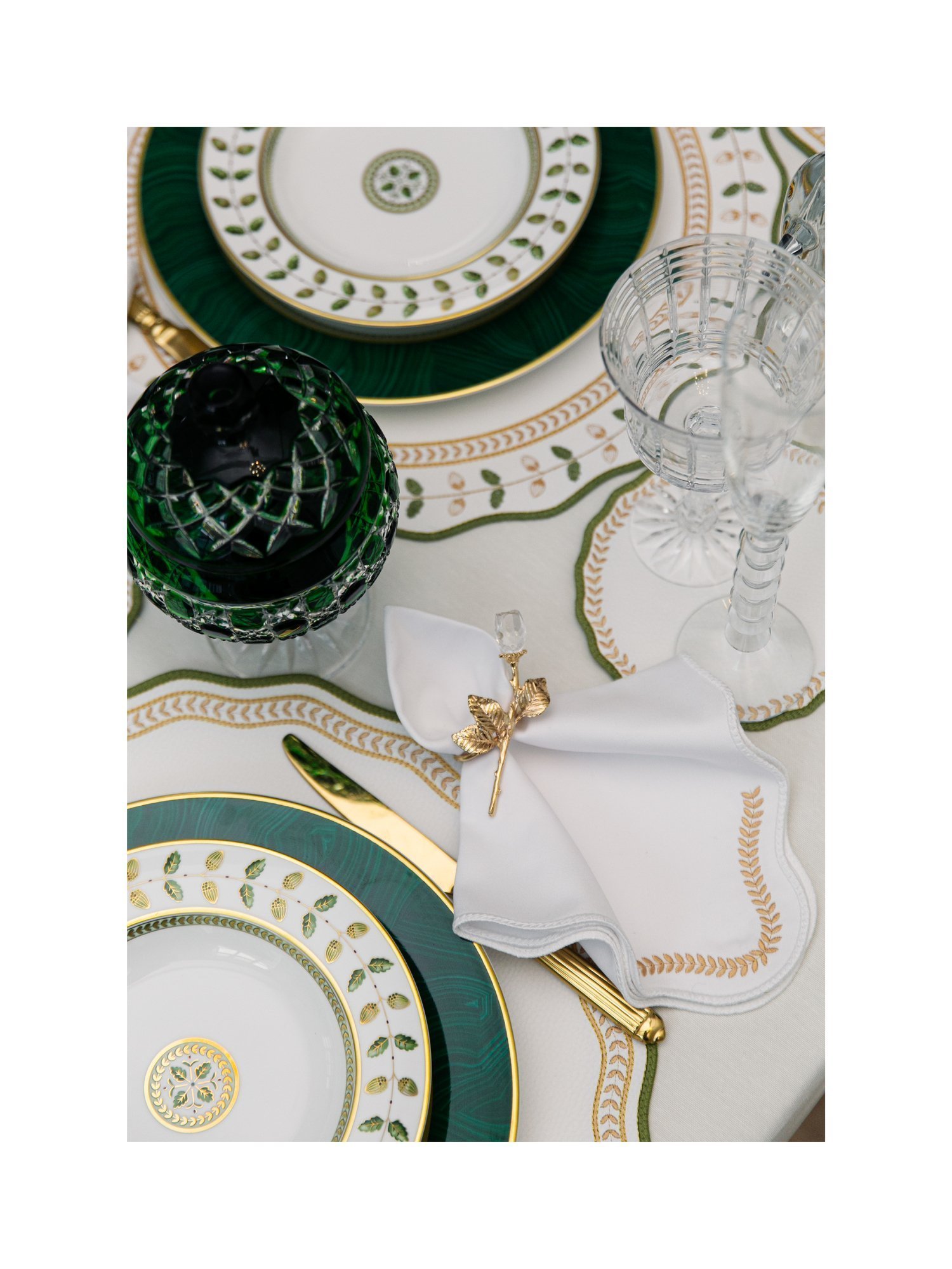 Эти текстильные детали становятся не просто дополнением к сервировке, а поэтическим продолжением традиции Bernardaud Constance — классики, которую можно ощутить и глазами, и руками.