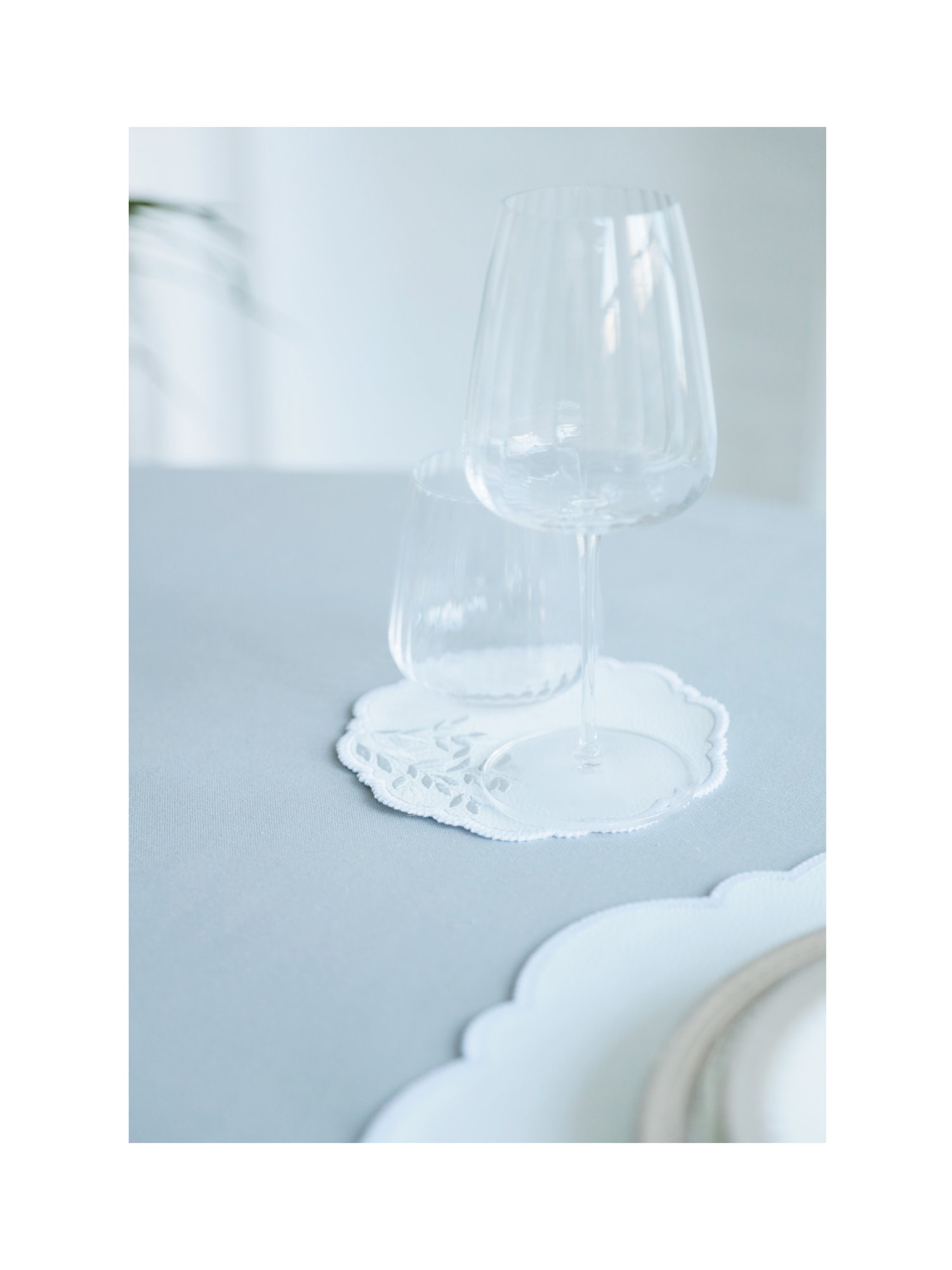 Jardin Mojarelle — коллекция из премиальной эко-кожи в бело-золотом и бело-серебряном исполнении. Лёгкий растительный орнамент и сияющая вышивка придают сервировке благородство и воздушность. Идеально подходит для сочетания с изысканным фарфором и хрусталём, создавая завершённый образ стола.