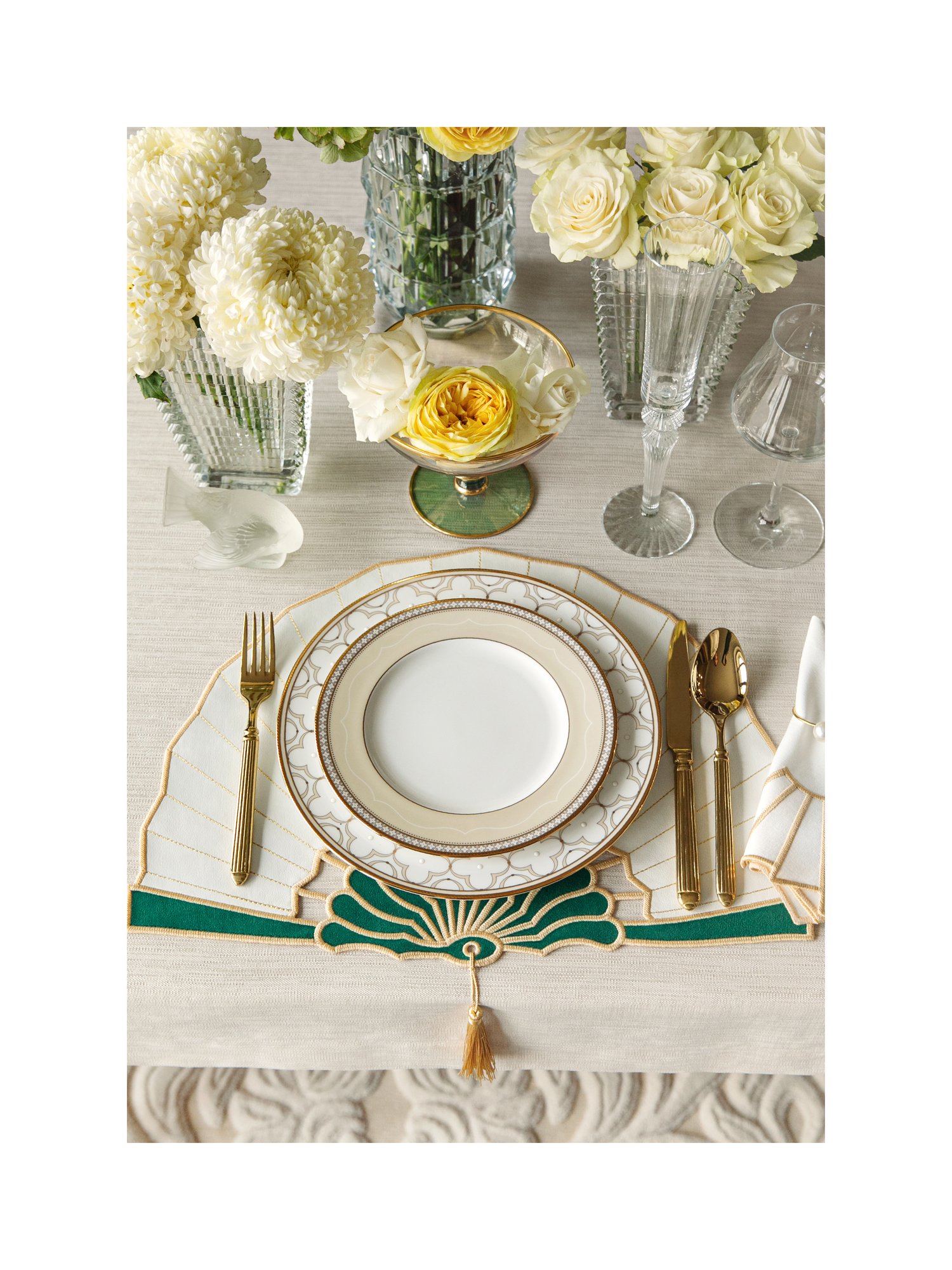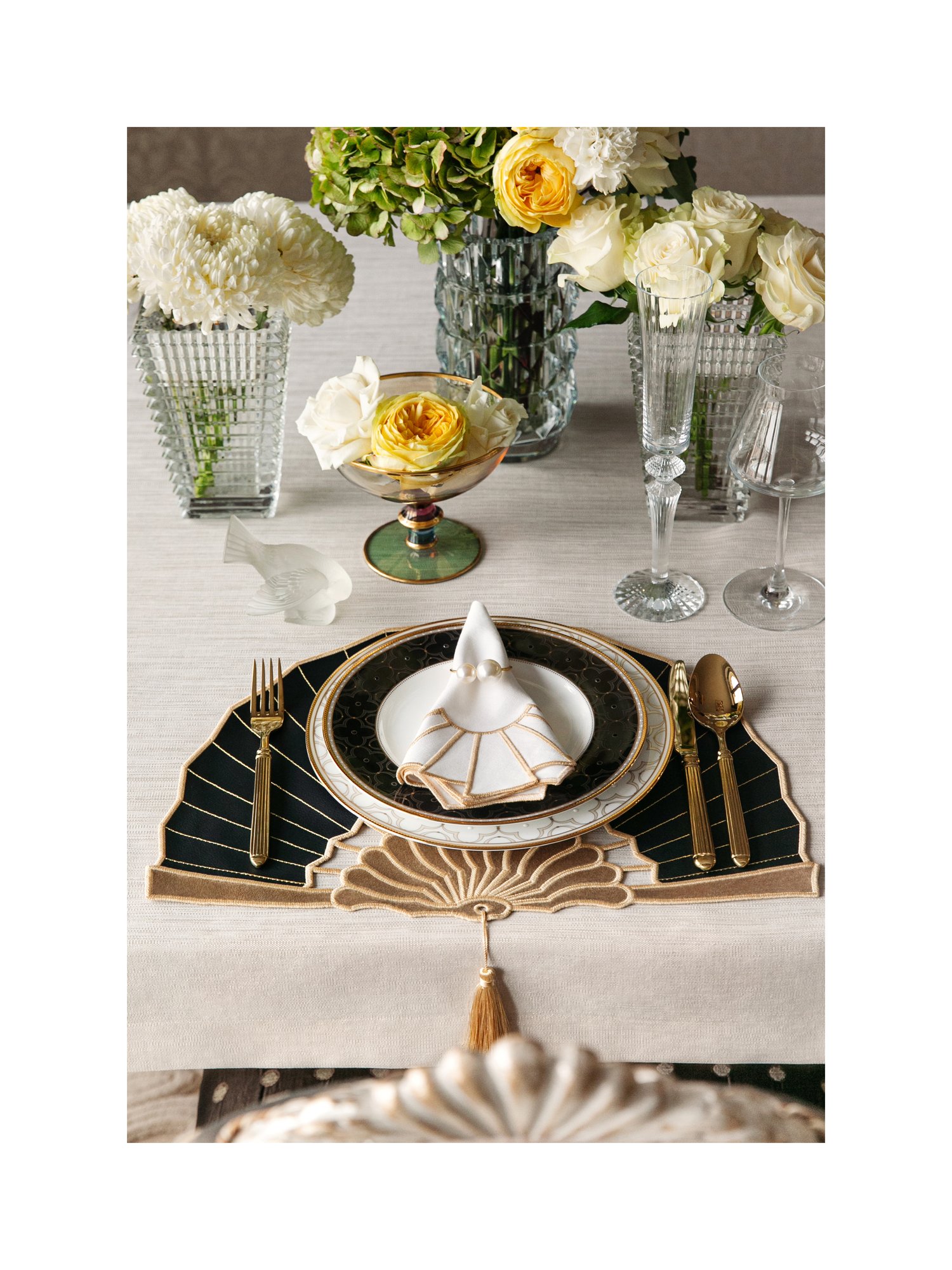 Вдохновлённые формой раскрытого веера, плейсматы из этой коллекции превращают сервировку в маленькое представление. Их силуэт словно задаёт ритм композиции, а разные интерпретации — однотонная и двухцветная — открывают простор для акцентов и нюансов. Декоративная кисточка завершает образ лёгким движением, добавляя в сервировку нотку утончённой элегантности.