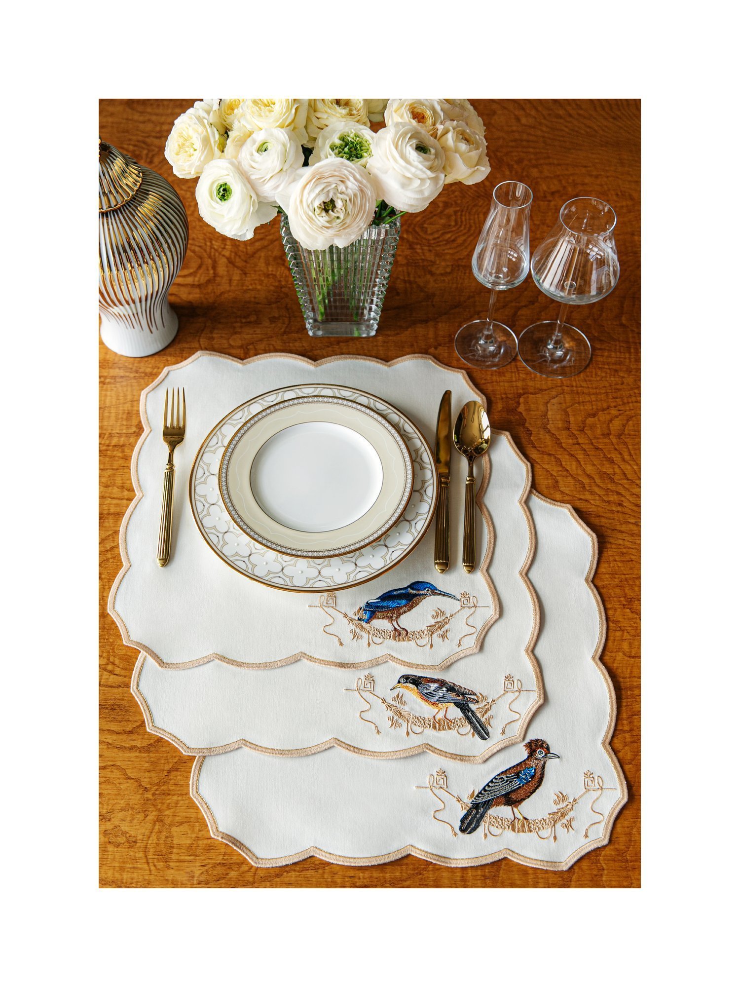 Эта коллекция сочетает в себе классику европейской эстетики и лёгкость природного вдохновения, позволяя воссоздать атмосферу аристократического ужина на фоне утончённого лесного пейзажа.