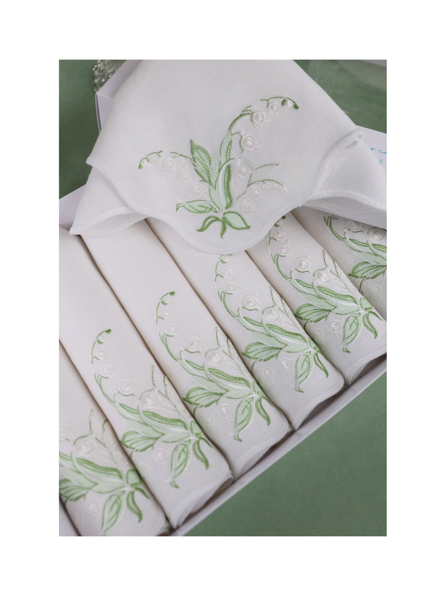Коллекция Lilies of the valley вдохновлена утончённой красотой ландышей — символа чистоты, нежности и пробуждения весны. На изделиях расцветают изящные вышитые веточки с крошечными колокольчиками, которые обрамляют край мягким и изысканным орнаментом. Тонкие линии и гармоничные детали придают композиции воздушность и лёгкость, создавая ощущение утончённой природной гармонии.